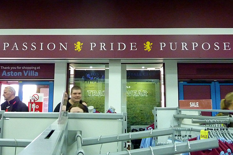 I sommerpausen skifter Aston Villa deres logo ud, og bl.a. kommer der nogle ændringer på løven. Det er lidt svært at se på billedet, men den nye løve er allerede kommet frem flere steder bl.a. her i klubbens merchandisebutik ved Villa Park.