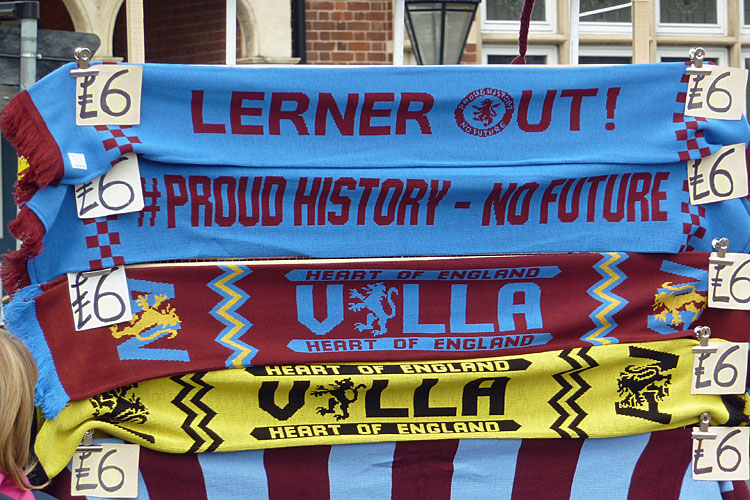 Der er vist ingen tvivl om, hvad de uofficielle merchandisestande uden for Villa Park mener om klubbens ledelse.